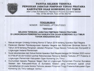 Sehubungan dengan telah dilaksanakannya Perpanjangan Masa Pendaftaran dan Penyesuaian Jadwal Pengumuman Seleksi Jabatan Pimpinan Tinggi Pratama Kabupaten Ogan Komering Ulu Selatan Nomor : 09 / PANSEL JPTP.OKUS / 2024 tanggal 21 Maret 2024 dimana proses […]