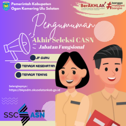 PENGUMUMAN PERPANJANGAN KEDUA PENDAFTARAN DAN PERUBAHAN JADWAL PELAKSANAAN SELEKSI TERBUKA JABATAN PIMPINAN TINGGI PRATAMA PADA PEMERINTAH KABUPATEN OGAN KOMERING ULU SELATAN TAHUN 2024