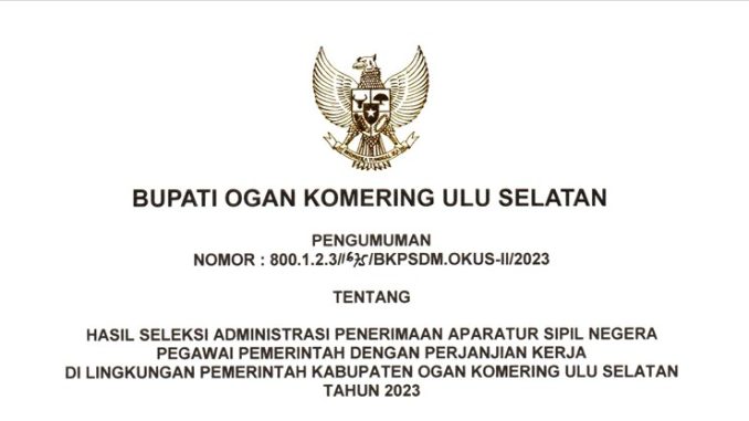 Pengumuman Hasil Seleksi Administrasi Penerimaan ASN PPPK Di Lingkungan Pemerintah Kab. Ogan Komering Ulu Selatan 2023